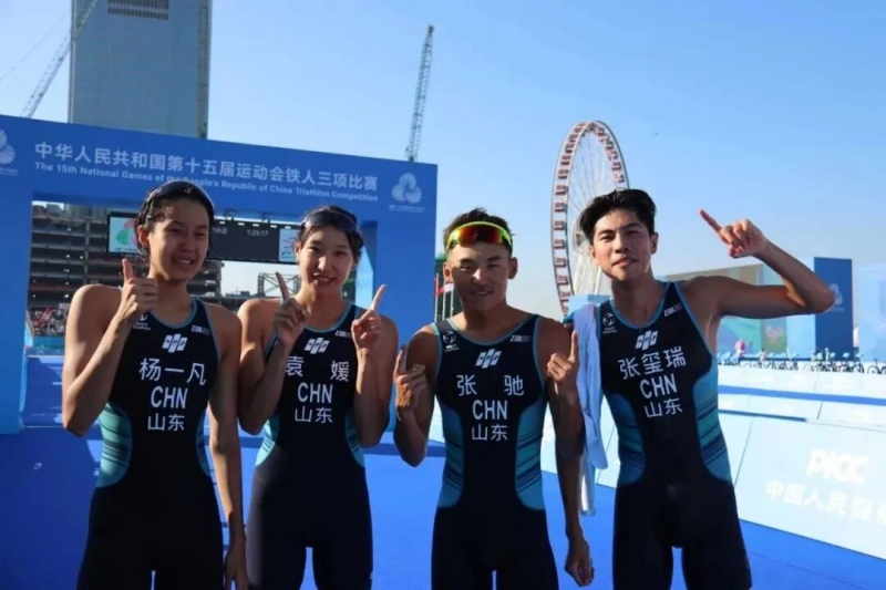 人三项混合接力比赛中,我市运动员张驰、张玺瑞勇夺2枚金牌。截至目前,本届全运会我市运动员已获得6金1银2铜的好成绩。